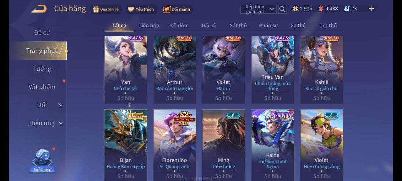 Arthur Đặc cảnh băng lôi, Krixi Phó văn nghệ, TelAnnas Giám thị thân thiện, Butterfly Quận Chúa Đế Chế, Violet Phó học tập, Violet Đặc Dị, Violet Huy Chương Vàng, Triệu Vân Chiến tướng mùa đông, Stuart Vua hề, Bijan Hoàng kim cơ giáp, Capheny Hầu gái, Capheny Siêu cấp tin tặc, Ngộ Không Đặc vụ băng hầu, Dirak Cảnh Vệ Bầu Trời, Kahlii Kim cô giáo chủ, Florentino S-Quang Vinh, Max Trà Chanh, Ming thầy tướng, Zuka Xích Hùng Chiến Giáp, Mganga Doombot Hủy Diệt, Kaine Thợ Săn Chính Nghĩa, Paine khúc nhạc tử vong, Yan nhà chế tác, Bonnie S Quang Vi
