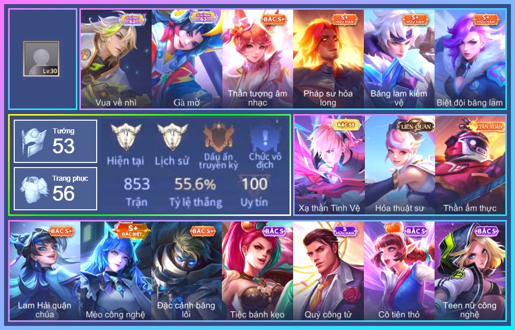 Arthur Đặc cảnh băng lôi, Arthur Băng lam kiếm vệ, Krixi Cô Tiên Thỏ, Krixi Phó văn nghệ, Telannas Dạ hội, Butterfly Teen Nữ Công Nghệ, Violet Nữ đặc cảnh, Violet Huy Chương Vàng, Natalya Quý Cô Thủy Tề, Natalya Băng lam nữ soái, Triệu Vân Quý Công Tử, Zuka Đại Phú Ông, Capheny S-Quang Vinh, Alice Dạ hội, Điêu Thuyền Mèo công nghệ, Grakk Thần ẩm thực, Ishar Quận chúa sông Nile, Yorn Đặc Nhiệm Swat, Liliana thần tượng âm nhạc, Liliana Thuỷ thủ hồ ly, Qi Tiểu long, Lauriel Đọa Lạc Thiên Sứ, Aoi Sát Thủ Đô Thị, Aoi Lam Hải quận chúa, Mina Tiệc Bánh Kẹo, Mina Đào tạo siêu sao, Airi Đặc công tử điệp, Roxie Hầu gái, Roxie Hỏa thuật sư, Amily Khủng long xanh, Dextra Lữ khách cao nguyên, Bright Vua về nhì, Zip Gà siêu quậy, Zip Ông trùm giáng sinh, Maloch Samurai Tử Sĩ, Omen Thuyền trưởng hải tặc, Celica Băng lam pháo thủ, Zephys Đầu bếp Sashimi, Kahlii Siêu đầu bếp, Sinestrea Lữ khách sa mạc, Ormarr CĐV Cuồng nhiệt, Sephera Quý tiểu thư, Slimz Thỏ nhồi bông, Slimz Lẩu chua cay, Yena Hoạt náo viên, Quillen Trưởng ngoại khoa, Azzenka Quang Vinh 2.0, Laville Xạ Thần Tinh Vệ, Darcy Pháp sư hỏa long, Keera Y tá lạ, Florentino Thần thoại Hy Lạp, Yan nhà chế tác, Richter Bá tước, Volkath Tư lệnh viễn chinh, Fennik Đội đặc nhiệm, Ata Gà mờ