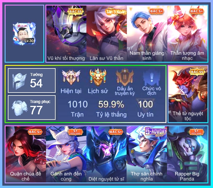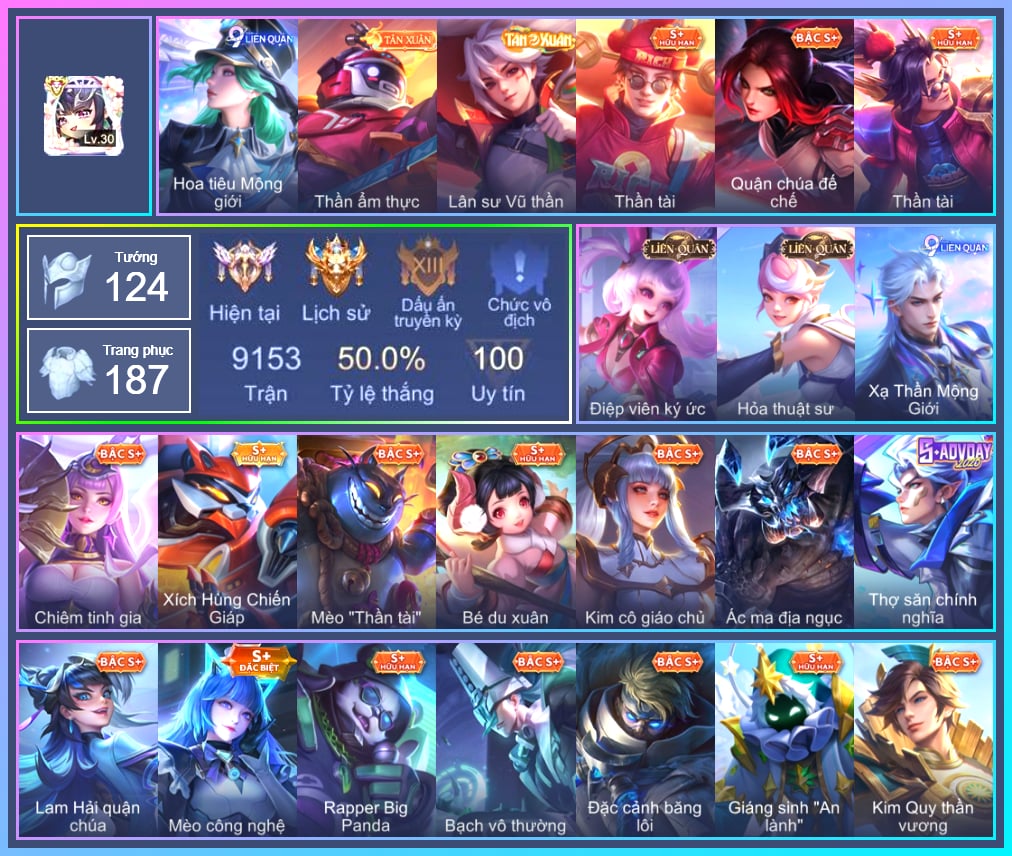 Valhein Hoàng tử Quạ, Valhein Số 7 Thần Sầu, Valhein Thần tài, Valhein Xạ Thần, Valhein S-Quang Vinh, Triệu Vân Thần Tài, Krixi Công chúa Bướm, Krixi Xứ Sở Thần Tiên, Krixi Thuỷ Thủ, Mina Tiểu thư đoạt hồn, Mganga Doombot Hủy Diệt, Gildur phượt thủ, Toro Trung Phong Cắm, Toro Ngưu hải vương, Yorn Soái ca bãi biển, Kahlii Kim cô giáo chủ, Kahlii Siêu đầu bếp, Krizzix Crursed Corpse, Natalya Quý Cô Thủy Tề, Arduin, Arduin Quang Vinh, Raz Đại tù trưởng, Raz Saitama Cosplay, Quillen Trưởng ngoại khoa, Quillen Huyết phong, Veera Thiên nga đen, Zephys Phi thương, Zephys Tư lệnh viễn chinh, Zephys Đầu bếp Sashimi, Violet Nữ đặc cảnh, Zill Thần mộng mị, Ilumia Nữ Chúa Tuyết, Ilumia Diva nổi loạn, Ilumia Ngược dòng thời gian, Preyta Phi cơ F1, Kriknak Bọ Cánh Bạc, Lumburr Golem thảo nguyên, Omega Cỗ Máy Siêu Tốc, Omega Hộ vệ ba bích, Omega Hộ Vệ Carano, Darcy Nam tước, Hayate Bạch ảnh, Hayate Bạch lang, Hayate Bạch vô thường, Richter Dạ hội, Richter Quang vinh 2.0, Richter Cứu hộ, Tulen Phù Thủy Kiến Tạo, Tulen Phó kỷ luật, Tulen Dạ hội, Murad Thợ Săn Tiền Thưởng, Murad M-TP Thần Tượng Học Đường, Murad Thiên Tài Sân Cỏ, Murad S-Quang Vinh, Zuka Đại Phú Ông, Zuka Giáo Sư Sừng Sỏ, Zuka Phát Tài, Zuka Đầu bếp hoàng cung, Zuka Rapper Big Panda, Zuka Xích Hùng Chiến Giáp, Moren Anh thợ điện, Arthur Hoàng kim cốt, Arthur Đặc cảnh băng lôi, Ryoma Đại Tướng Nguyệt Tộc, Veres Đạo tặc, Veres Thần thoại Hy Lạp, Veres Chị đại học đường, Grakk Khô Lâu Đại Tướng, Grakk Mèo thần tài, Grakk Màu cờ sắc áo, Grakk Thần ẩm thực, Errol Vượt ngục, Nakroth Quân đoàn địa ngục, Nakroth Producer Tia chớp, Slimz Lẩu chua cay, Slimz Sứ giả Thiên giới, Slimz Siêu Cấp Tối Thượng, Florentino Kiếm sĩ Olympic, Florentino Thần thoại Hy Lạp, Florentino S-Quang Vinh, Keera Hồ điệp, Max Hiệp Sĩ Nhí, Max Quang Vinh, Max Tiểu King Kong, Max Trà Chanh, Điêu Thuyền Nữ y tá, Điêu Thuyền Mèo công nghệ, Alice Xứ sở thần tiên, Alice bé du xuân, Alice The Butterfly Mansion Girl, Butterfly Teen Nữ Công Nghệ, Butterfly Quận Chúa Đế Chế, Butterfly Bình Minh Tận Thế, Maloch Ác Ma Địa Ngục, Maloch Ác nhân vô tuyến, Maloch Đại ca Mukbang, Ngộ Không Đạo tặc, Ngộ Không Cổ thần Ai Cập, Enzo Thần thoại Hy Lạp, Enzo Nhà Leo núi, Capheny S-Quang Vinh, Thane Kẻ Hủy Diệt, Thane Mật vụ, Thane Khoảnh khắc vinh quang, Azzenka Quang Vinh 2.0, AzzenKa Giáng sinh An lành, Azzenka U Hồn Sa Mạc, Astrid Bạch Kiếm Tiểu Thư, Astrid Hoa anh đào, Airi Lễ hội mùa xuân, Volkath Quang vinh, TelAnnas Cảnh Vệ Rừng, TelAnnas Quang Vinh, Tel Annas Jujutsu Sorcerer, Rouie Quang Vinh, Yena Nữ cướp biển, Yena Hoa tiêu Mộng giới, Teemee Tay đua siêu tốc, Teemee Thịt xiên nướng, Teemee Giấc Mơ Ngọt Ngào, Zip Tiểu đệ hổ báo, Zip Cá siêu quậy, Zip Ông trùm giáng sinh, Ignis Vì sao con khóc, Dirak Quý tộc, Dirak Đường chủ yêu giới, Wisp Hải Tặc Nhí, Elandorr Phi vụ thế kỷ, Qi Thiếu nữ pháo hoa, Qi Blogger Ẩm thực, Allain Lân sư Vũ thần, Lindis Đồng phục Shihakusho, Laville Tay đua đường phố, Laville Tay súng vô địch, Laville Kim quy thần vương, Sephera Phi vụ thế kỷ, Fennik Đội đặc nhiệm, Fennik Shipper Siêu thanh, Amily Đặc cảnh NYPD, Amily Hội ám hoàng, Amily Thám tử trung học, Celica Nữ cao bồi, Celica S-Quang Vinh, Celica Tâm hồn trà sữa, Lorion Chiến giáp hắc ám, Roxie Thám tử tập sự, Roxie kèn ái tình, Roxie Lễ hội hoa, Roxie Hỏa thuật sư, Liliana Thuỷ thủ hồ ly, Lauriel Đọa Lạc Thiên Sứ, Lauriel Nữ vương học đường 2, Lữ Bố Hoả Long Chiến Thần, Lữ Bố Vũ điệu Samba, Ata Tân thủy thủ, Ata Quang vinh, Kaine Đôi Cánh Đại Dương, Kaine Người dơi, Kaine Thợ Săn Chính Nghĩa, Aoi Tiệc bãi biển, Aoi Lam Hải quận chúa, Thorne Thám tử trung học, Sinestrea Lữ khách sa mạc, Sinestrea S-Quang vinh, Elsu Cảnh vệ thảo nguyên, Elsu Xạ Thần Mộng Giới, Yue Tiểu công Chúa, Yue Chiêm Tinh gia, Xeniel Kim sí điểu, Xeniel Shipper bánh mỳ, Aleister Xứ sở thần tiên, Aleister S - Quang Vinh, Tachi Đao khách vô tình, Bright Soái ca thánh điện, Bright Kỳ Lân Soái, Annette Băng kỳ lâm, Aya Điệp viên ký ức, Baldum chú thợ ống nước, Baldum Đồ chơi, Bonnie S Quang Vinh, Ybneth Hạt trưởng kiểm lâm, Dextra Quý cô Tuổi Dần, Dextra Lữ khách cao nguyên, Dolia Môn đồ tập sự, Skud Mafia, Marja Linh Xà Tư Tế, Caesar Bão tố